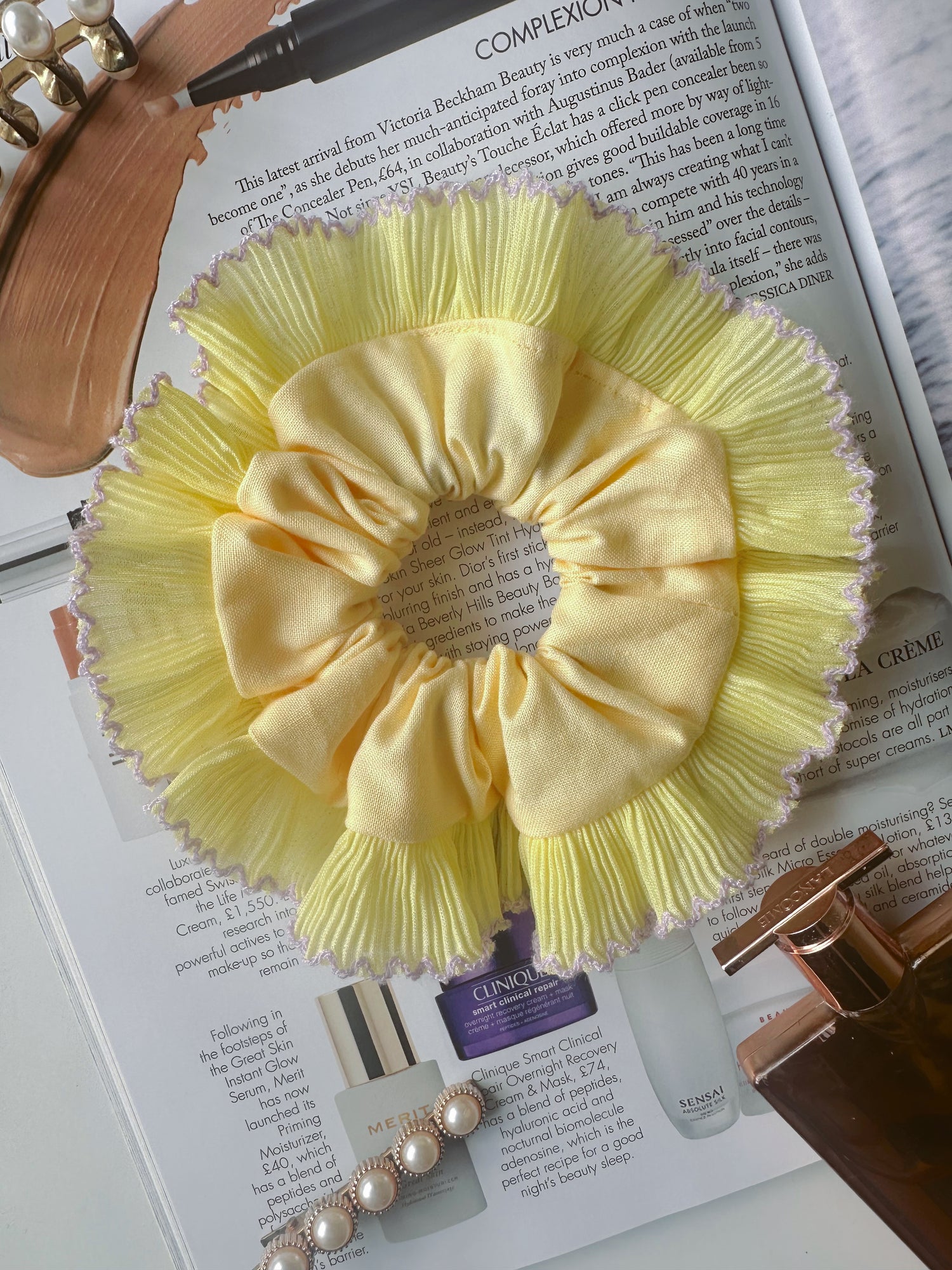 Mini Oversized Butter Yellow Scrunchie with Yellow Frill Trim