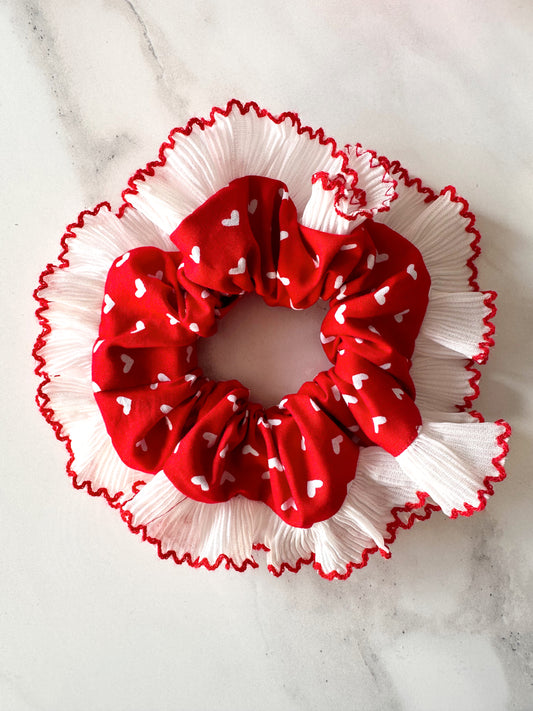 XL Valentines Scrunchie with White and Red Frill Trim