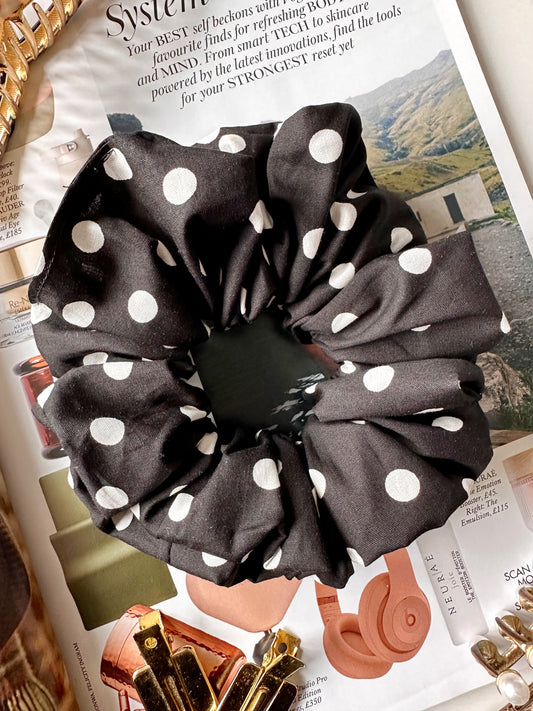 Red Christmas Print Scrunchie with Red and White Frill Trim