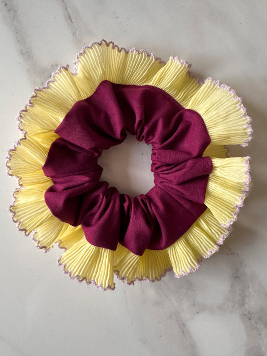 XL Purple Scrunchie with Yellow Frill Trim
