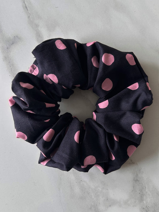 XL Navy and Pink Polkadot Scrunchie