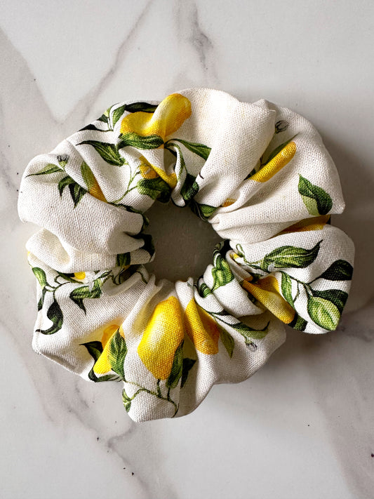 XL Lemon Print Scrunchie - Fruit Print, Lemon, Italian Summer