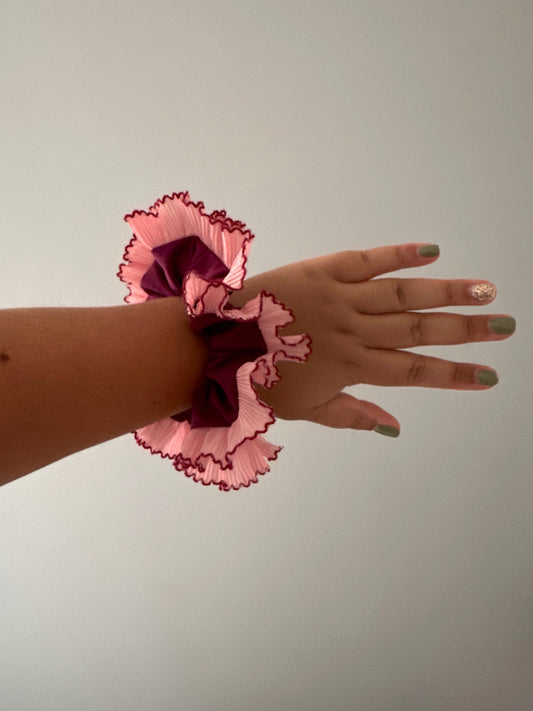 XL Purple Scrunchie with Pink Frill Trim