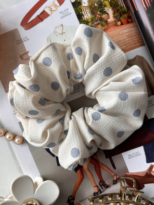 XL White and Light Blue Polkadot Scrunchie