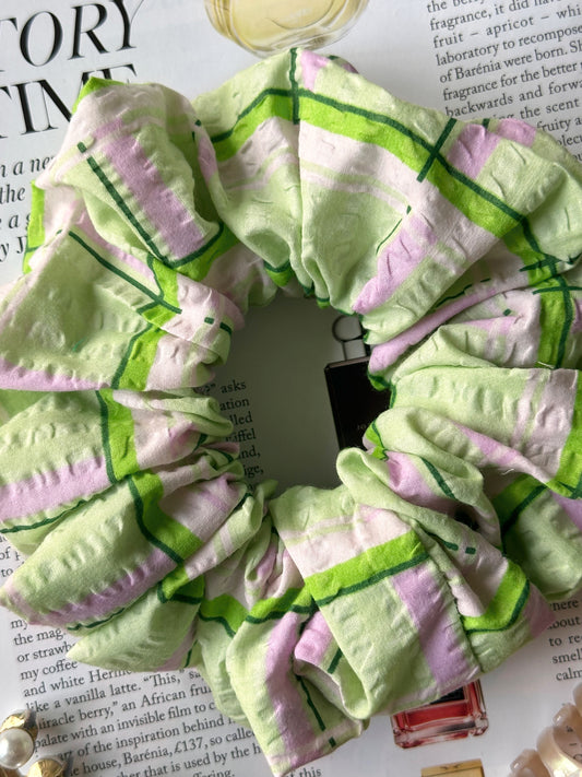 XL Light Green and Pink Check Scrunchie
