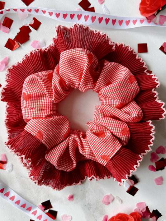 XL Valentines Gingham Scrunchie with Red and Pink Frill Trim