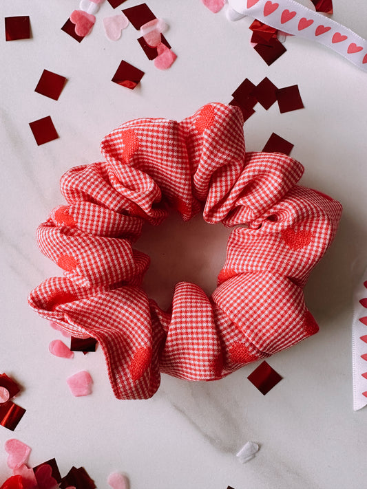 Valentines Gingham and Heart Print Scrunchie