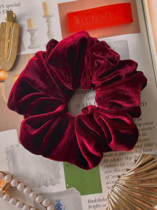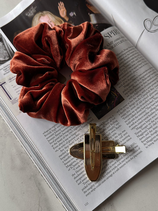 Set of 3 Velvet Scrunchies - Rust Orange, Burgundy and Black