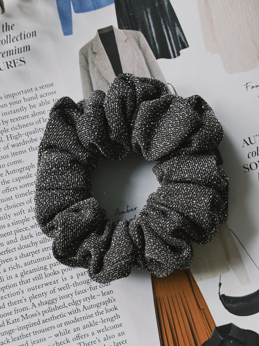 Black Ribbed Velvet & Gold Glitter Scrunchie