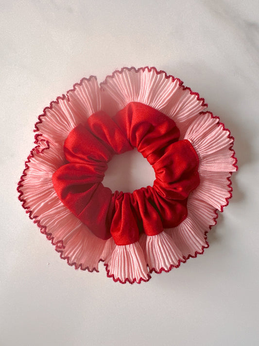 Mini Oversized Red Scrunchie with Pink and Red Frill Trim