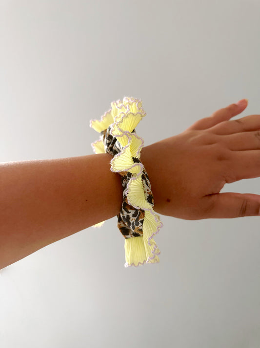Mini Oversized Leopard Print Scrunchie with a Yellow Frill Trim