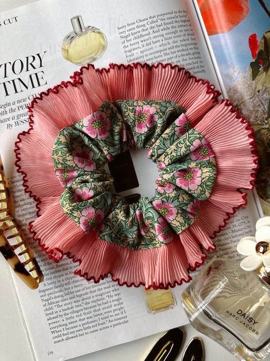XL Floral Scrunchie with Pink and Red Frill Trim