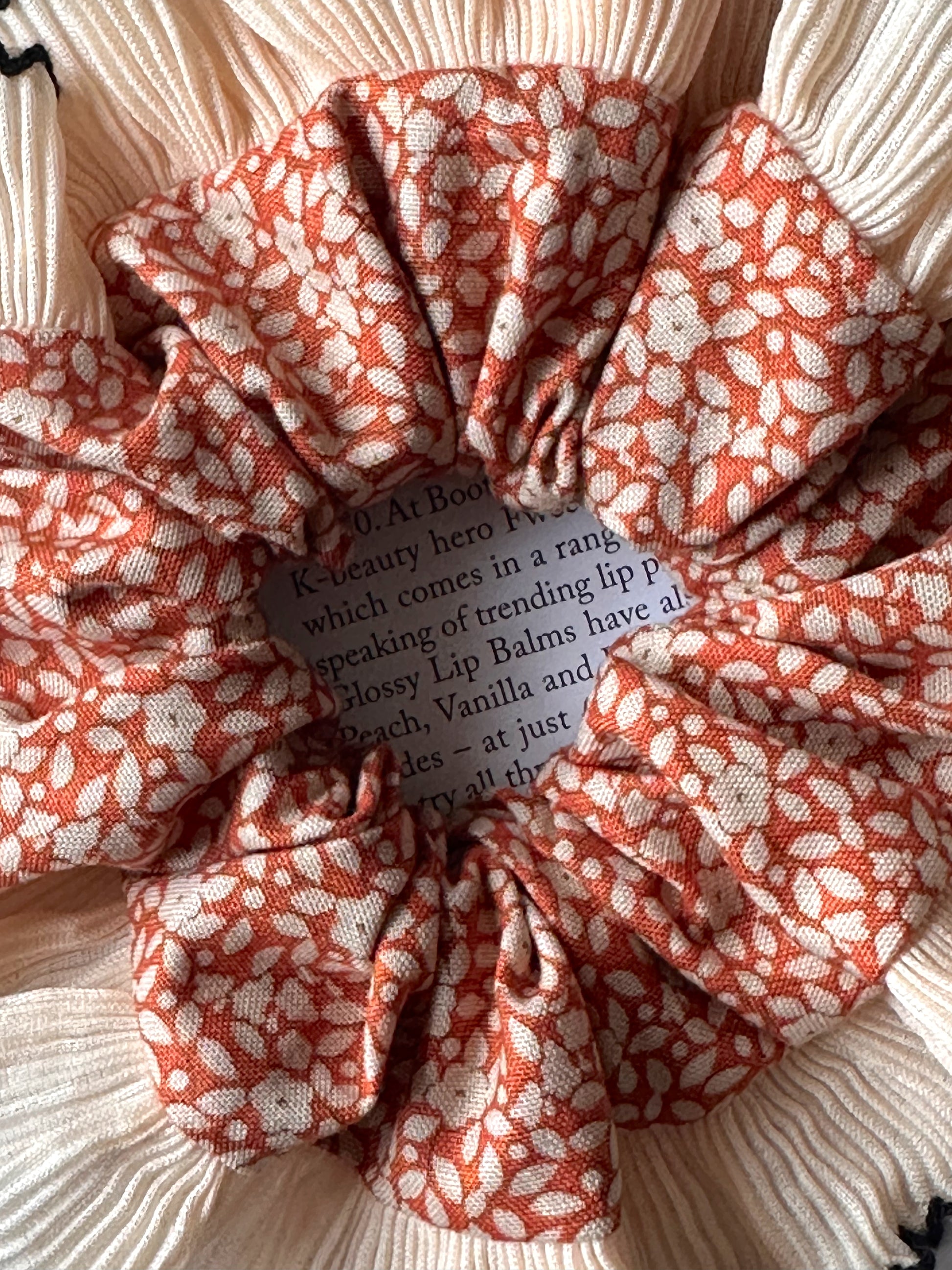 Mini Orange Floral Scrunchie with Cream Frill Trim