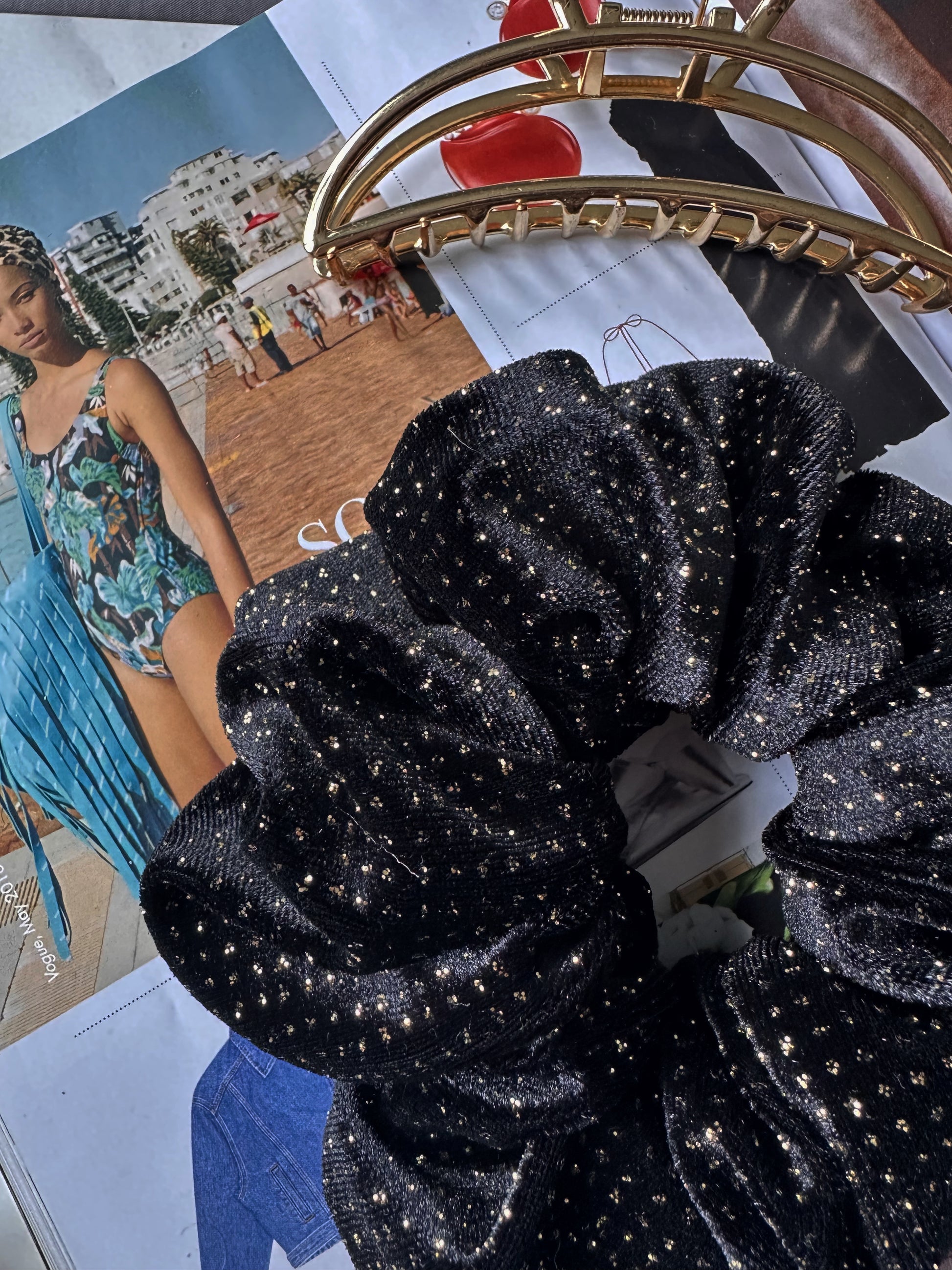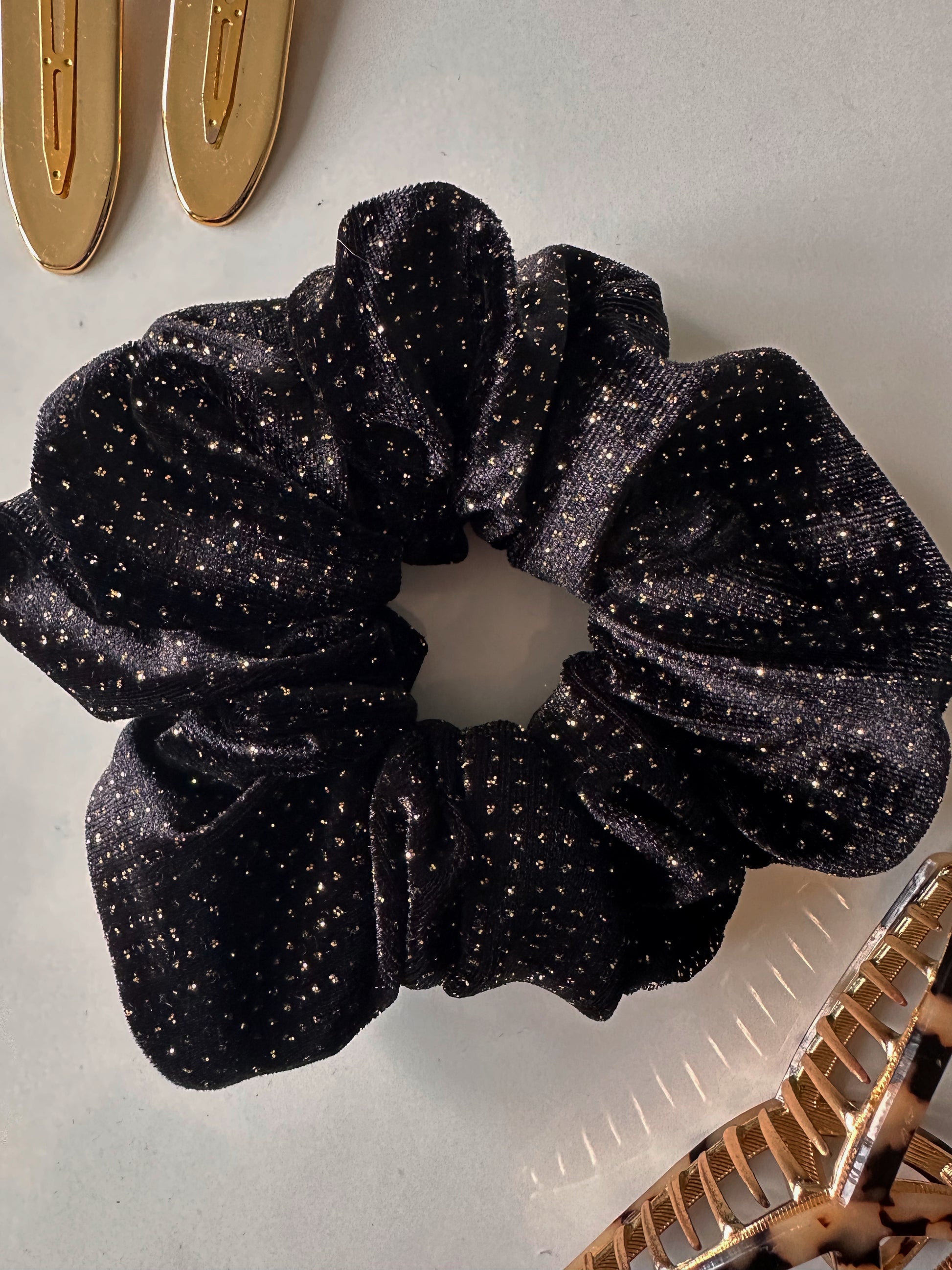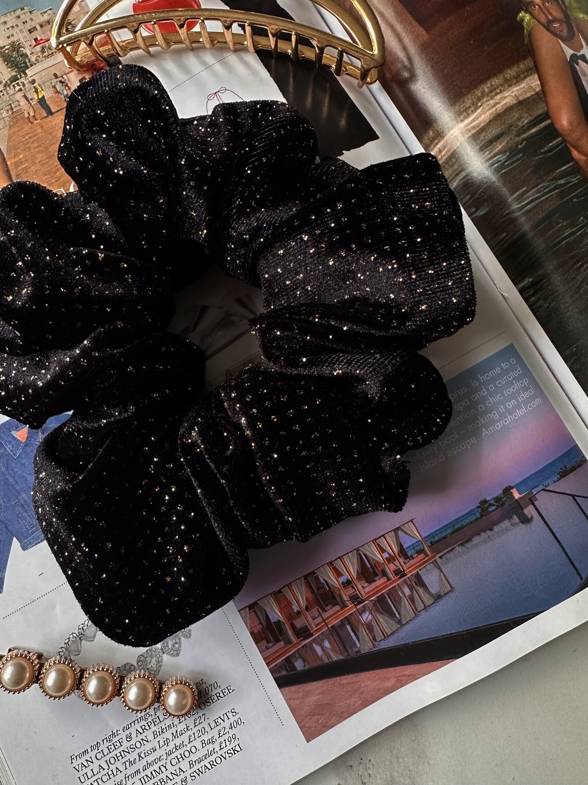 Crafted from premium velvet fabric, this scrunchie offers a soft, comfortable hold without damaging your hair. This scrunchie will add a little sparkle to any outfit over the winter period.