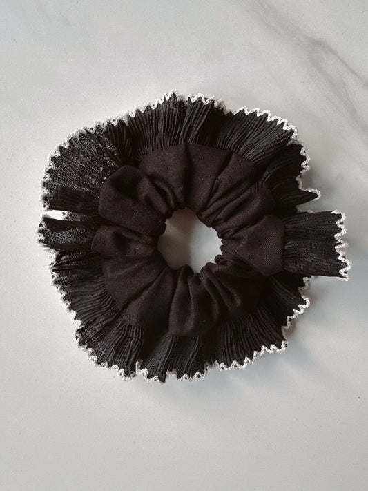 Smaller Oversized Black Scrunchie with Black Frill Trim